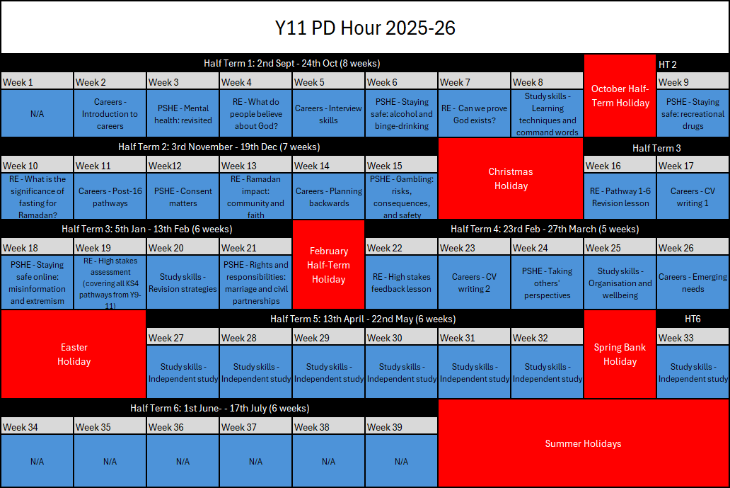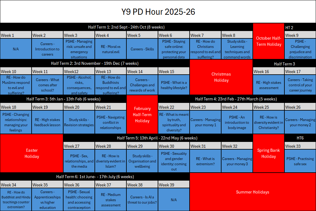 RE lessons are delivered solely through PD hour. This ensures that a wide range of beliefs can be considered and compared. It also allows students opportunities to revisit their prior learning before building upon it in their next lesson. Our curriculum road maps below give more detail as to which religion/world view students will study in each PD Hour lesson. The links to those can be found at the bottom of this page.